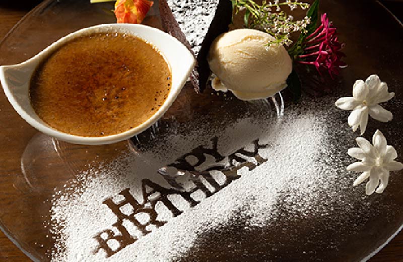 誕生日や記念日などのお祝いに最適な人気のサラダバー付きメニュー。乾杯には季節のノンアルコールカクテルを、食後には珈琲以外にサンフランシスコ生まれのティーブランド「マイティリーフ」からオーガニックティーなど、最高品質の自然素材をブレンドしたオリジナルティーを6種をご用意し、お好きな味わいをお選びいただけます。(当日予約可)
