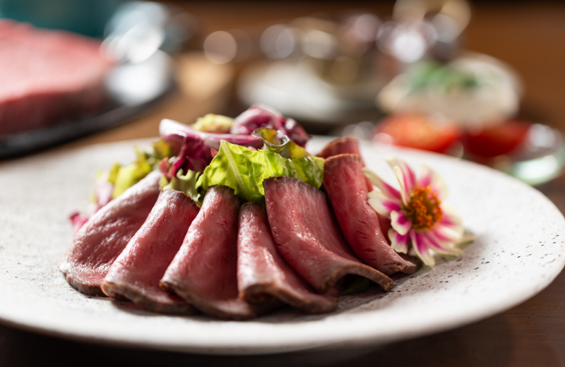 時間をかけて焼き上げた柔らかいローストビーフから始まり、メインでは常陸牛ヒレステーキを用意した上質な牛肉を堪能していただく特別コースです。